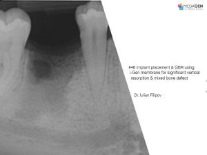 Dr. Iulian Filipov,Bone regeneration,Single replacement,Mandibular Posterior,#46,GBR,AnyRidge,i-Gen,resorption,bone defect,space management,Clinical case