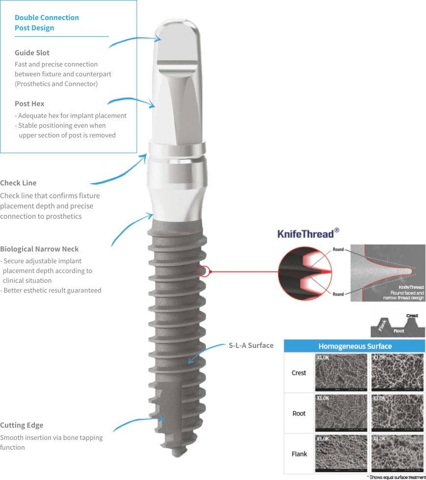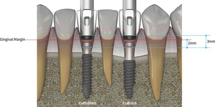 Narrow neck design (smaller than maximum diameter of thread part) allows adjustable implant placement depth according to clinical situation
