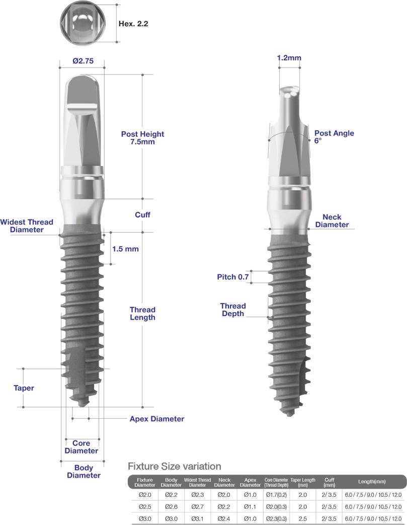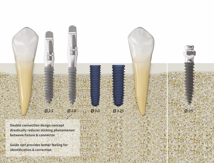 - One-piece solution for narrow ridge & anterior teeth