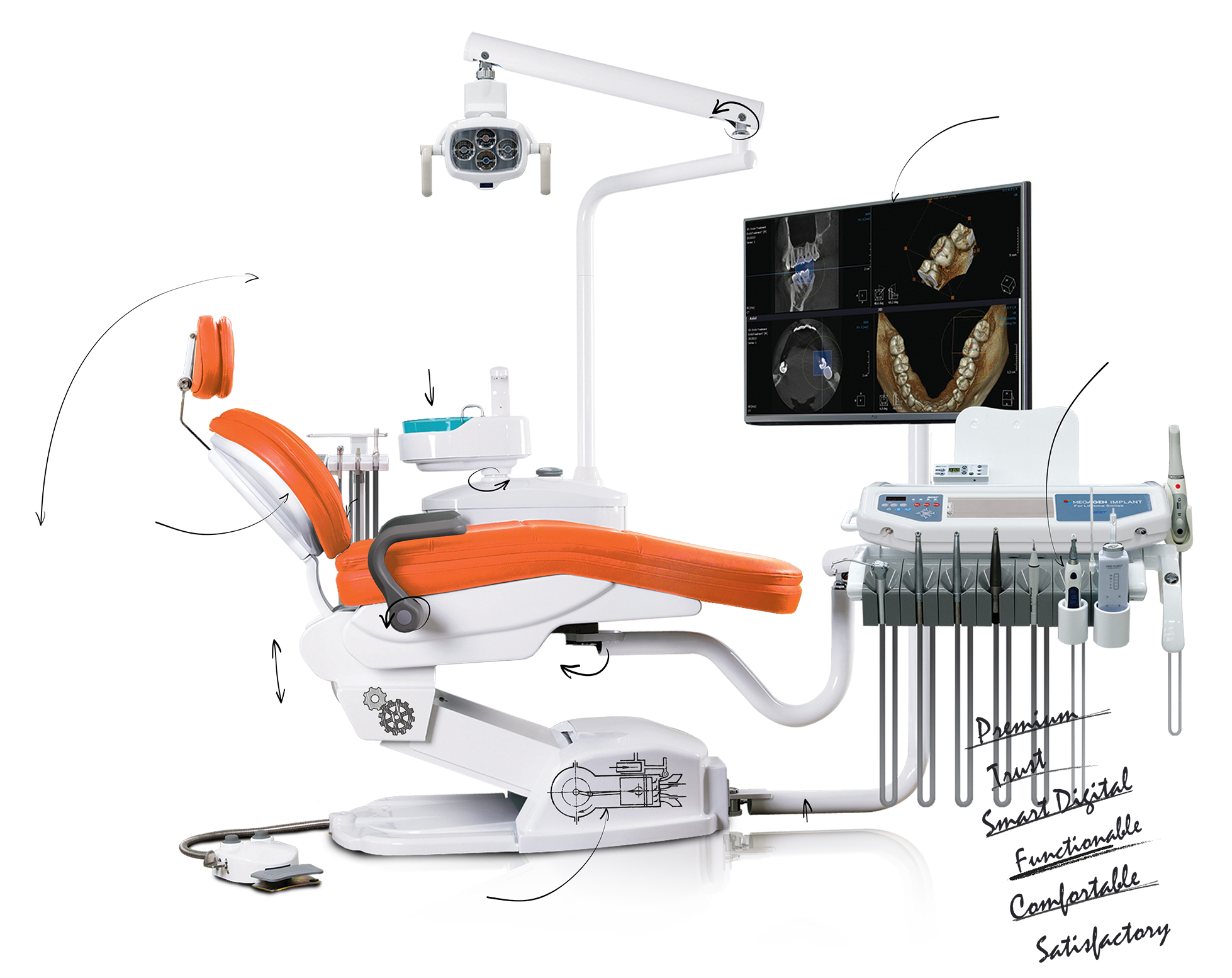 The NEXT dental chair is designed around maximum operational efficiency for the clinician and maximum comfort for the patient