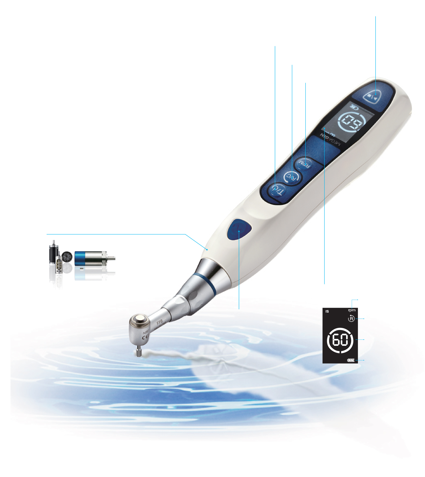 - Use as Second Implant Motor at soft bone cases (Max torque 35Ncm)