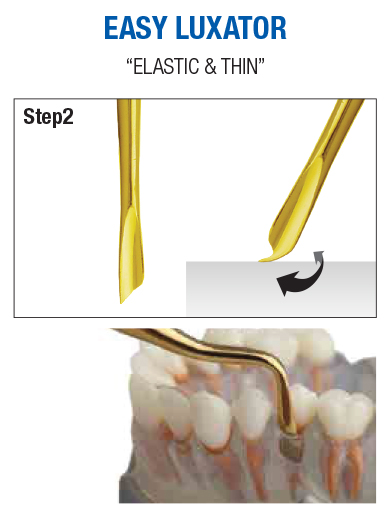 EASY LUXATOR is made of a special alloy, so it has elasticity and is thinner than other Luxators. It has the advantage of free from breakage, preserving the shape of the skeleton, and minimizing tissue damage.