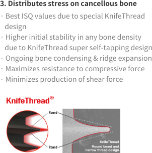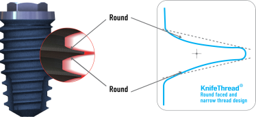This distinctive design enables bone condensing, gentle ridge expansion, maximized compressive force resistance, & minimized shear force production.1