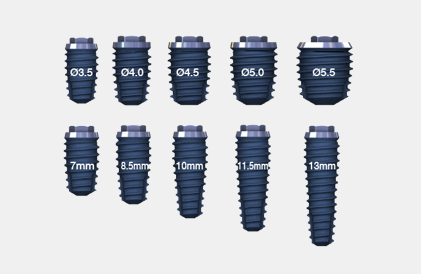 Wide selection of diameters (Ø3.5 to Ø6.0) & lengths (7mm to15mm) for all bone conditions