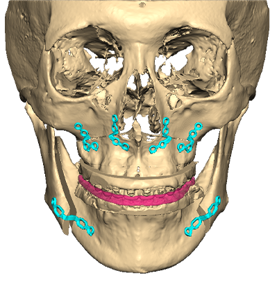 긴얼굴 교정을 위해 상-하악을 이동시켜 길이를 최대한 감소시키는 수술로 계획