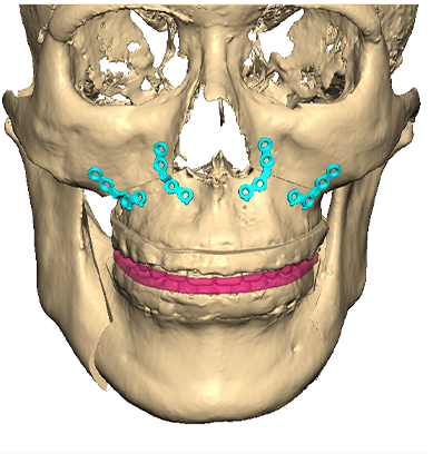 그에 맞춰 제작된 Wafer를 장착하여 뼈 삭제를 진행하고 맞춤형 Plate로 뼈를 고정.