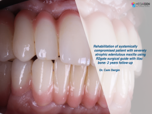 Rehabilitation of systemically compromised patient with severely atrophic edentulous maxilla using R2GATE surgical guide with iliac bone: 2 years follow-up